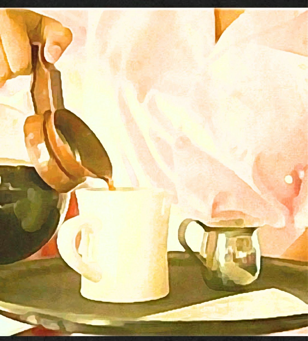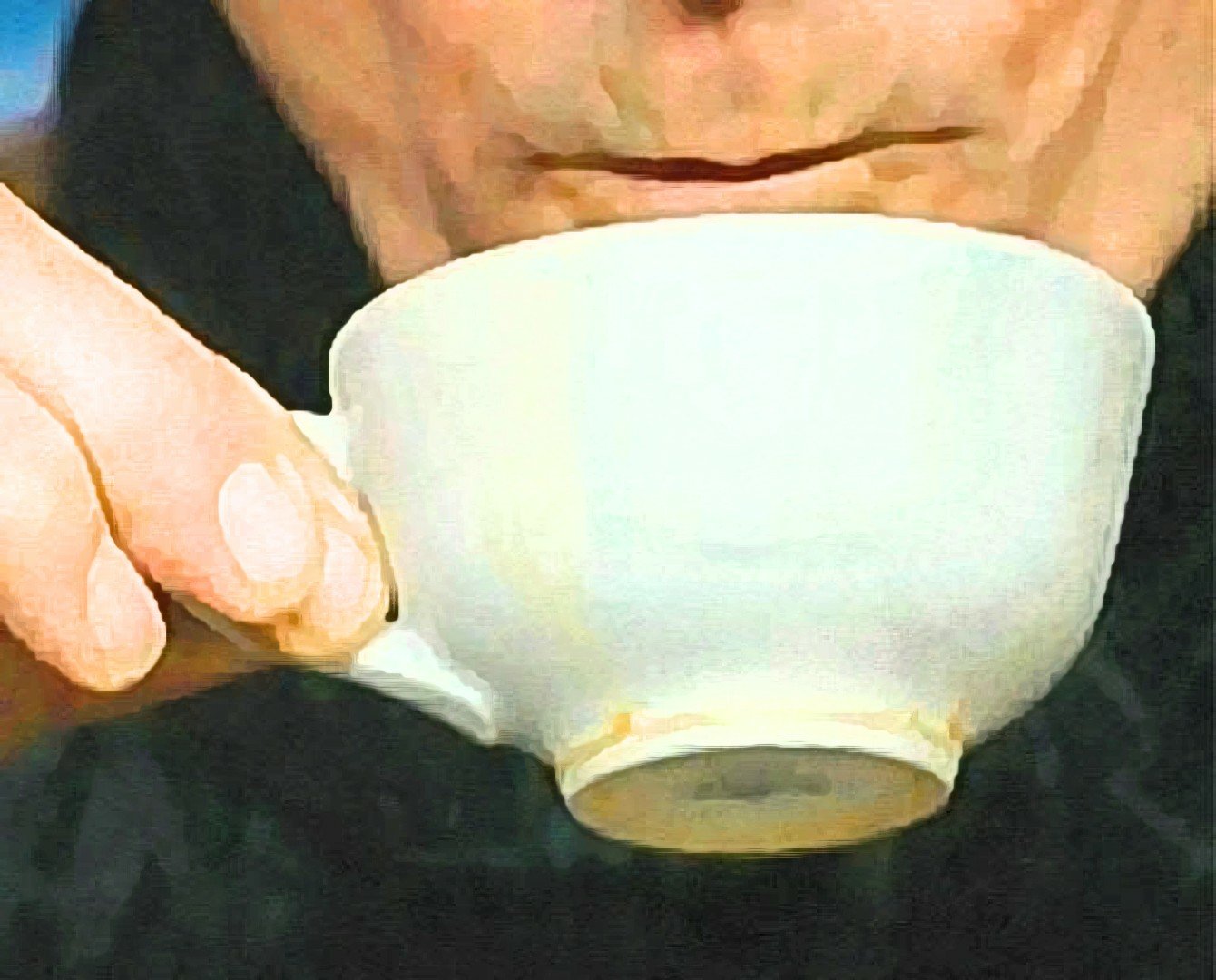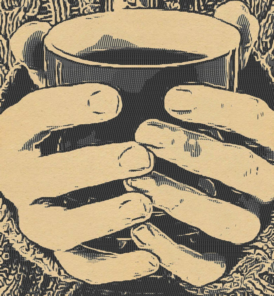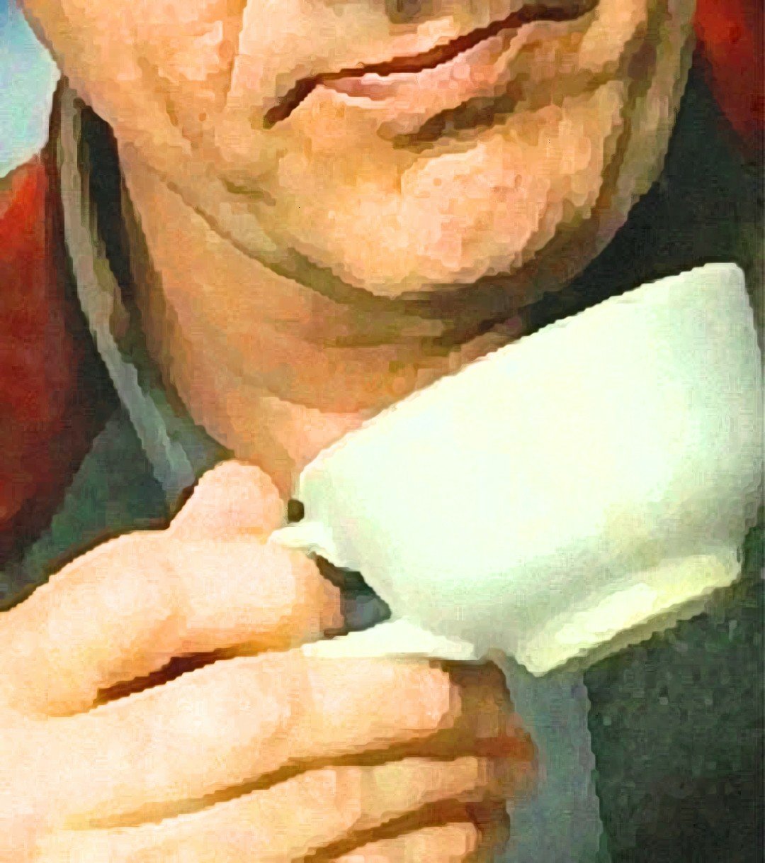 “Every time he took a sip of coffee, he didn’t just drink it like you two did,” I continued. “He leaned over to the cup and held it with both hands. He didn’t bring the cup to his lips with one hand. His lips went to the cup.”
