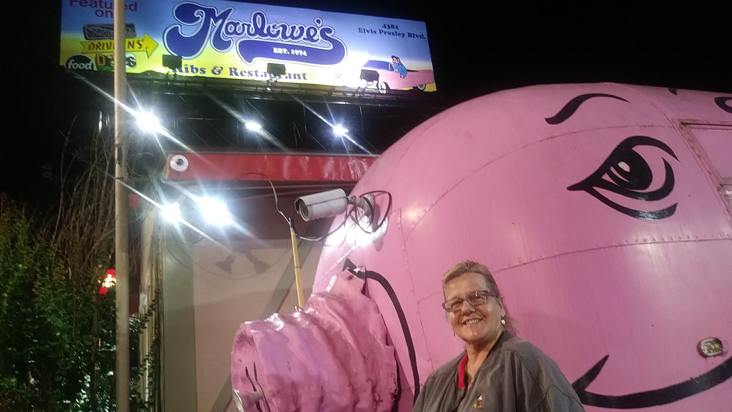 We enjoyed dining at Marlowe’s, about a mile south of Graceland. They offer free pickup and return at the hotel in a pink limo. It’s a fan favorite, not only because of their awesome BBQ, but they’re loaded with Elvis memorabilia, music, a gift shop and even movies on large screens. Marlowe’s has been featured on Food Network, “Diners, Drive-Ins and Dives.”