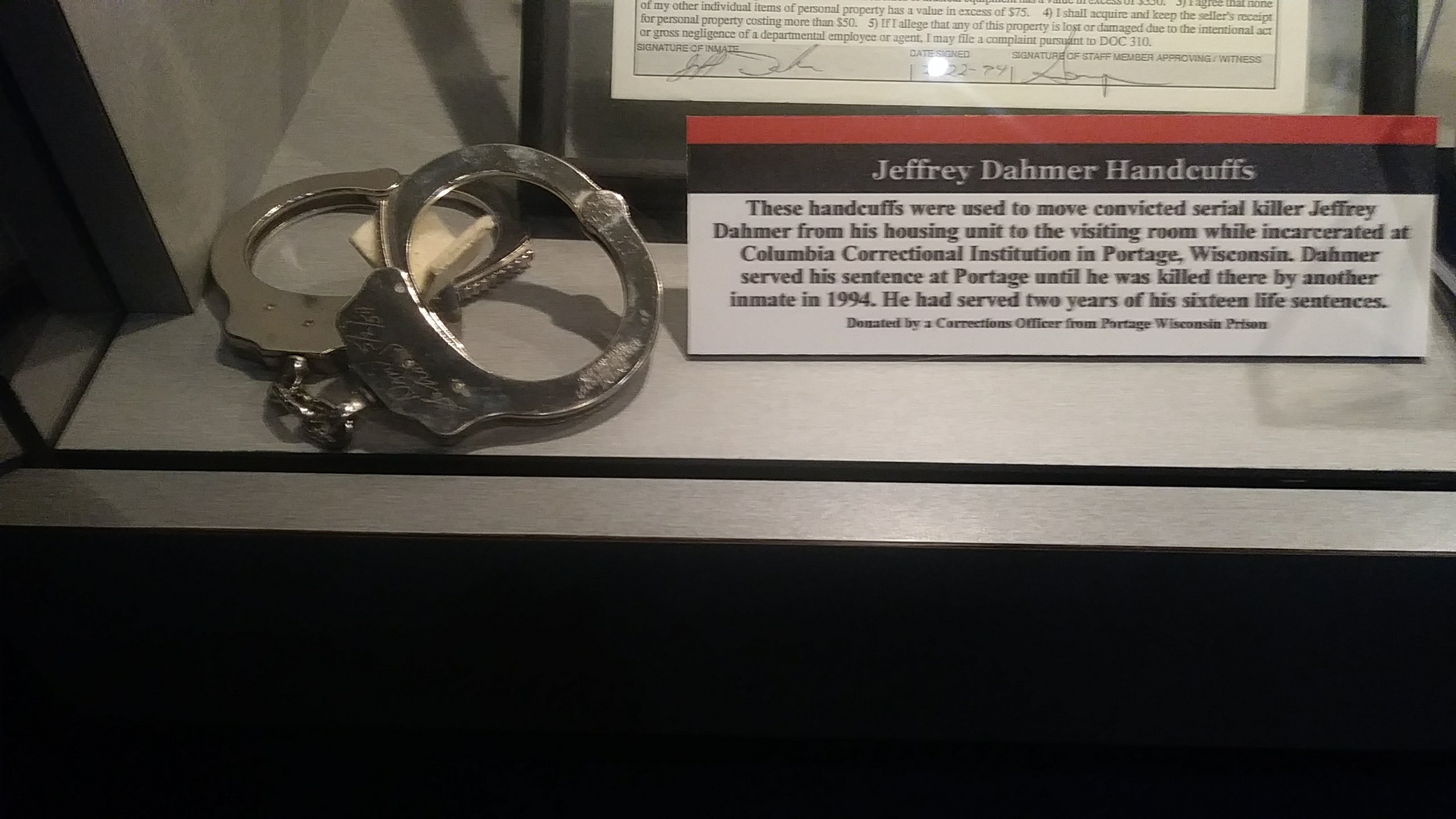 Other displays I thought were particularly interesting included the machine gun of “Scarface,” John Dillinger’s death mask, and Jeffrey Dahmer’s handcuffs.