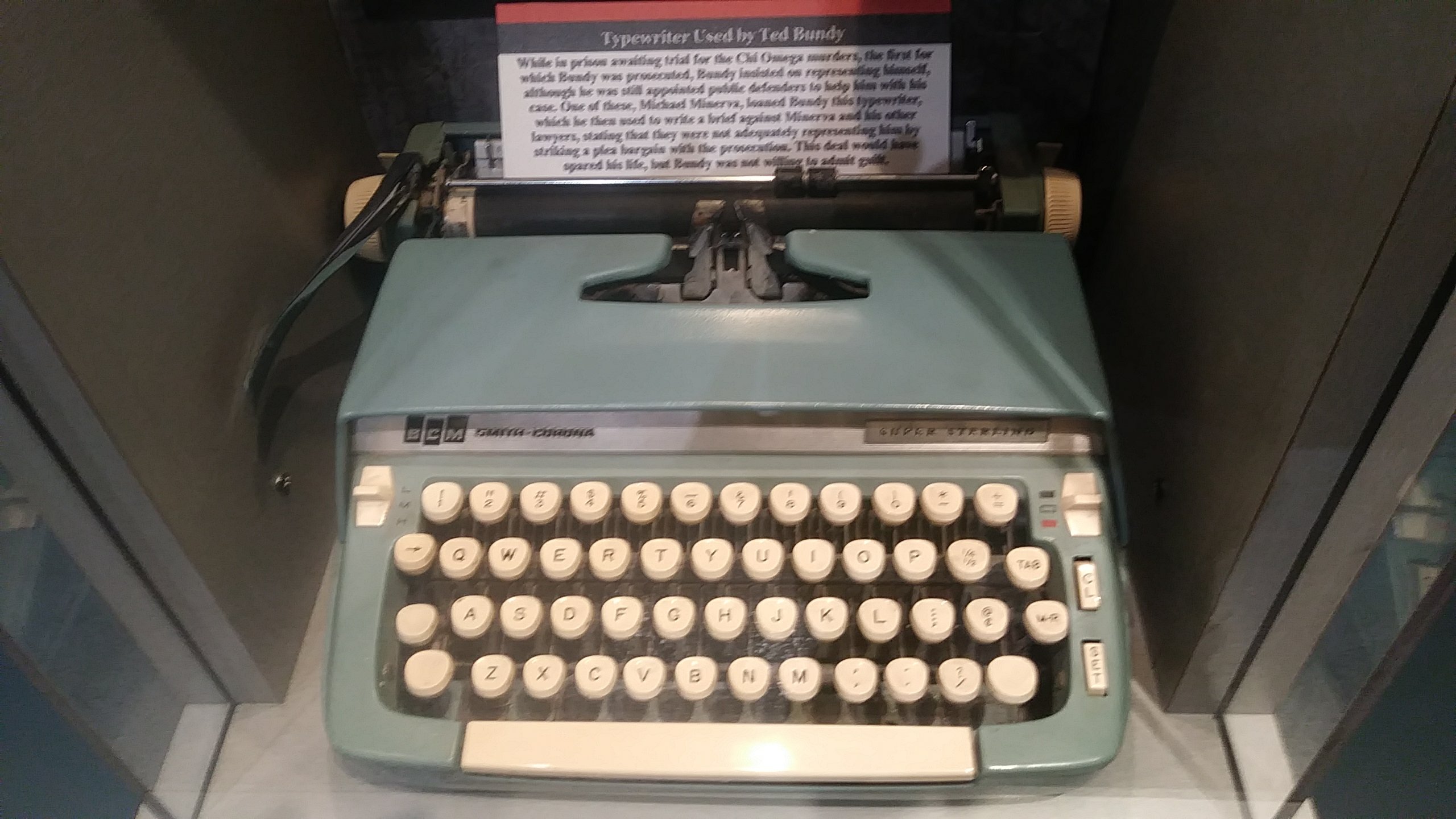 Serial killer Ted Bundy was represented with the Volkswagen he kidnapped victims in, his typewriter, radio and other items.