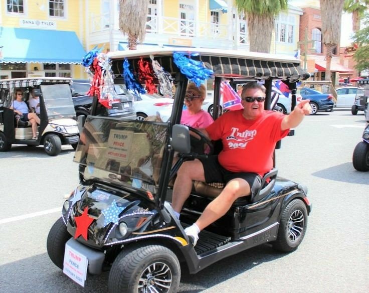 Parades for President Trump are not limited to waterways and boats. At Florida’s Lake Sumner Landing over 650 golf carts were used by over 1,200 participants in the “Villagers for Trump Parade.” Thousands more cheered them on.