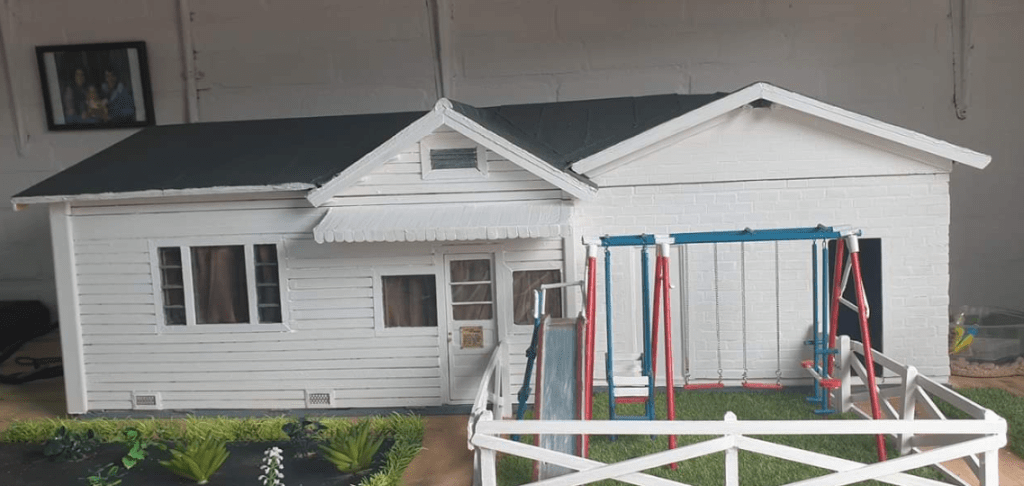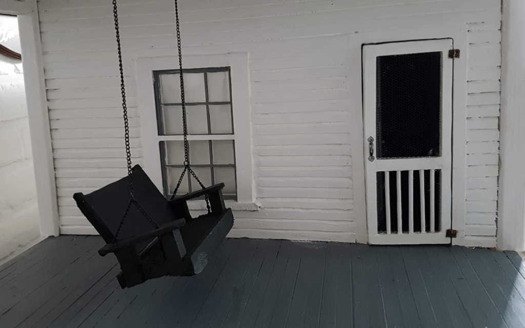 Then, out of popsicle sticks, she built a replica of the Tupelo birth house.