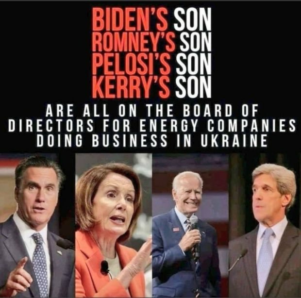 Three prominent Democrats and one RINO (Republican In Name Only) have sons who were on the Board of Directors of Ukraine businesses.