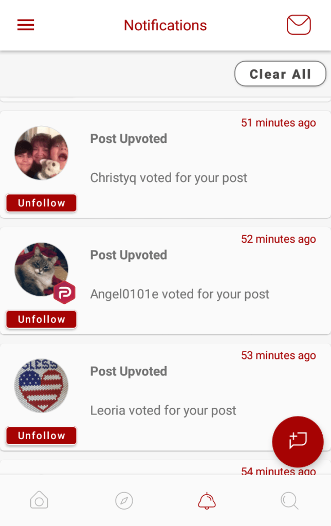 In the next screenshot, notice each person did something different: followed me, voted for one of my posts, Jenna uploaded a photo.