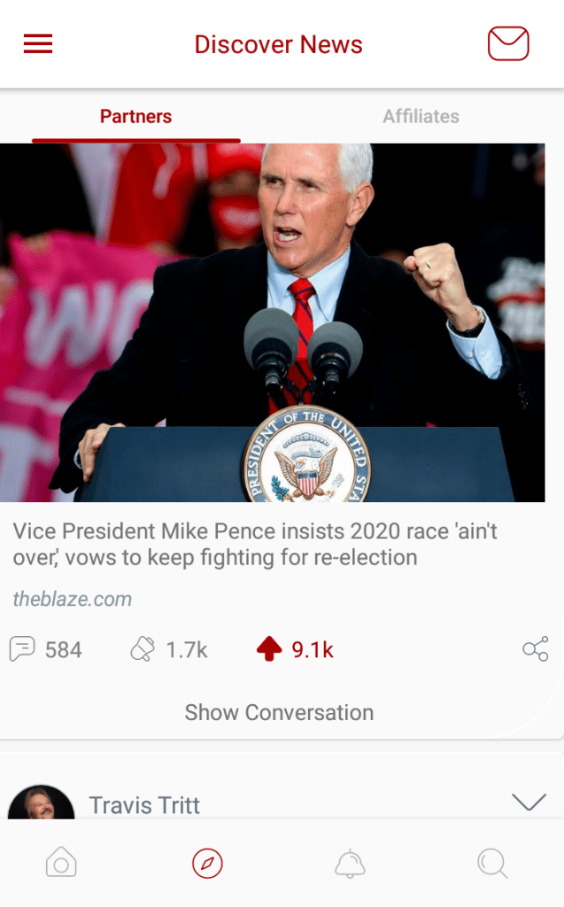 Notice on the Discover News screenshots below, Vice President Mike Pence is on the “Partners” side and the one below that is the “Affiliates” side.