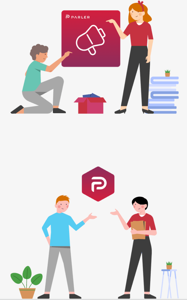Parler doesn’t allow terrorists, spam, unsolicited ads, pornography, threats to harm, blackmail, and content that glorifies violence against animals.