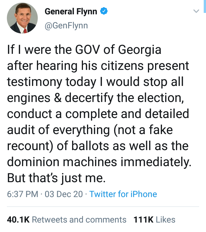 Kemp has taken considerable public heat and was criticized by President Donald J. Trump for not taking action, or investigating reports of obvious election fraud in his state.