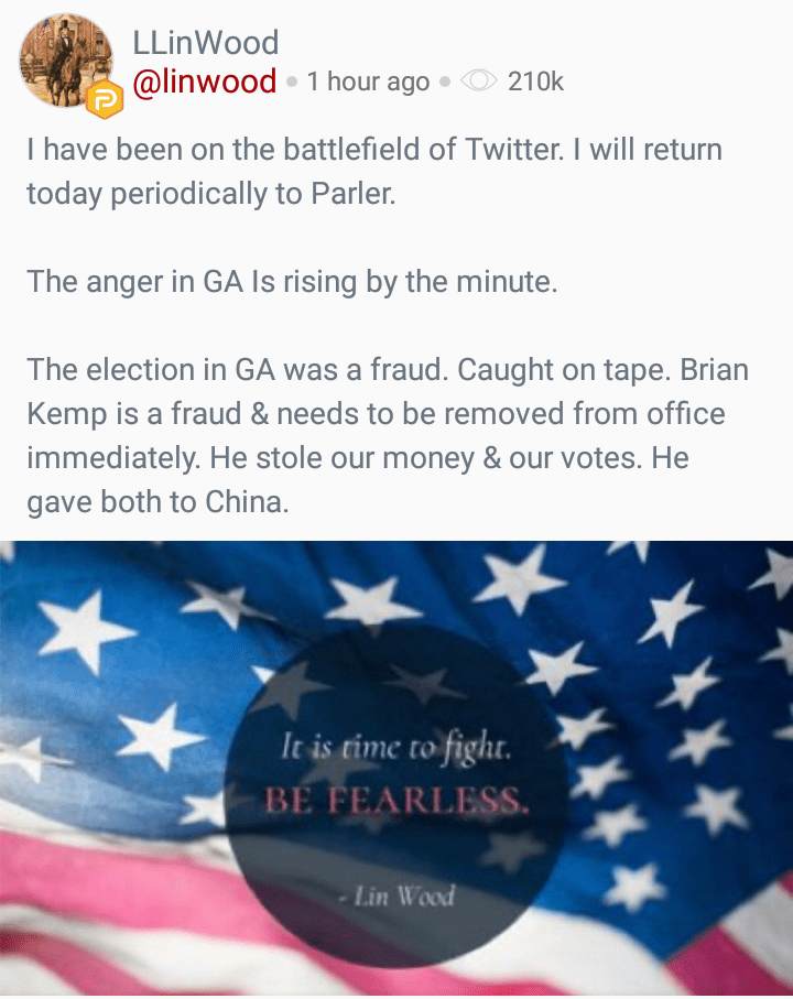 Friday morning on Parler, Powell called for Kemp to be removed from office.