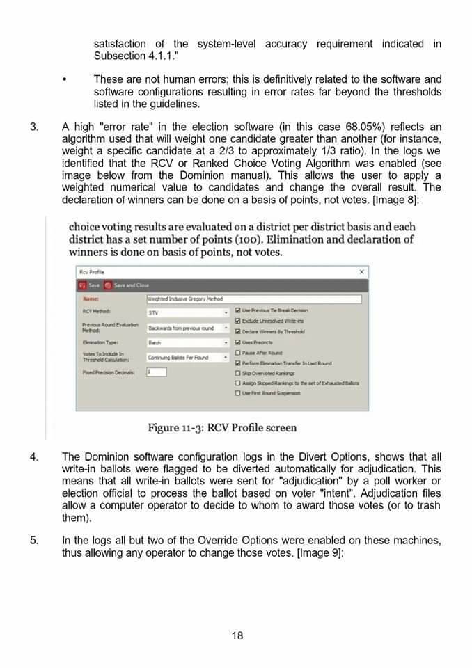 “The allowable error rate established by the Federal Election Guidelines is 1 of 250,000 ballots (.0008%). We observed an error rate of 68.05%. This demonstrated a significant and fatal error in security and election integrity.”