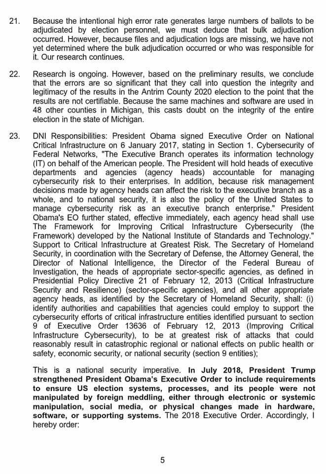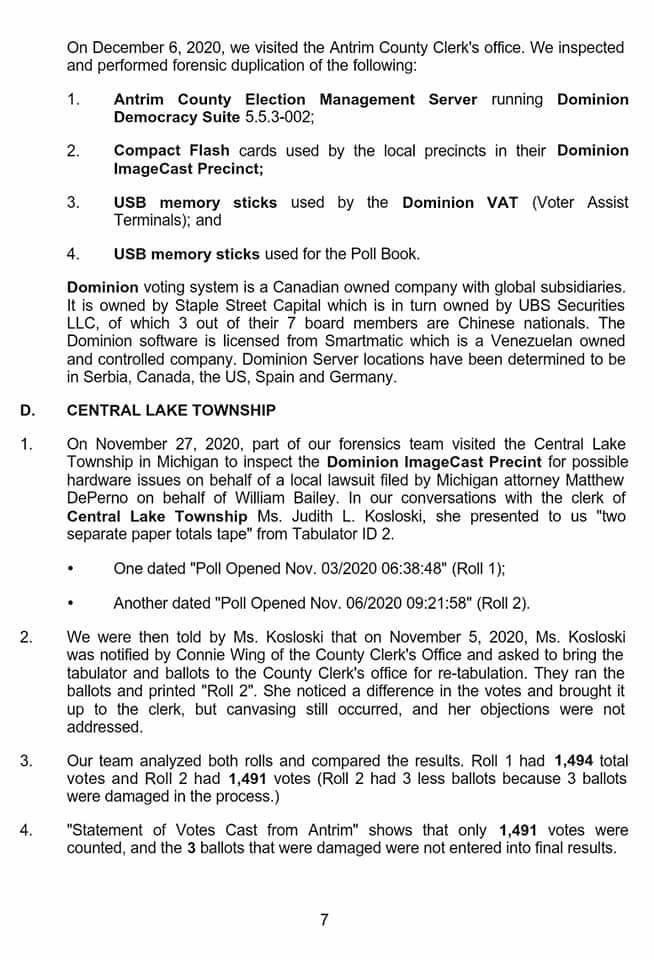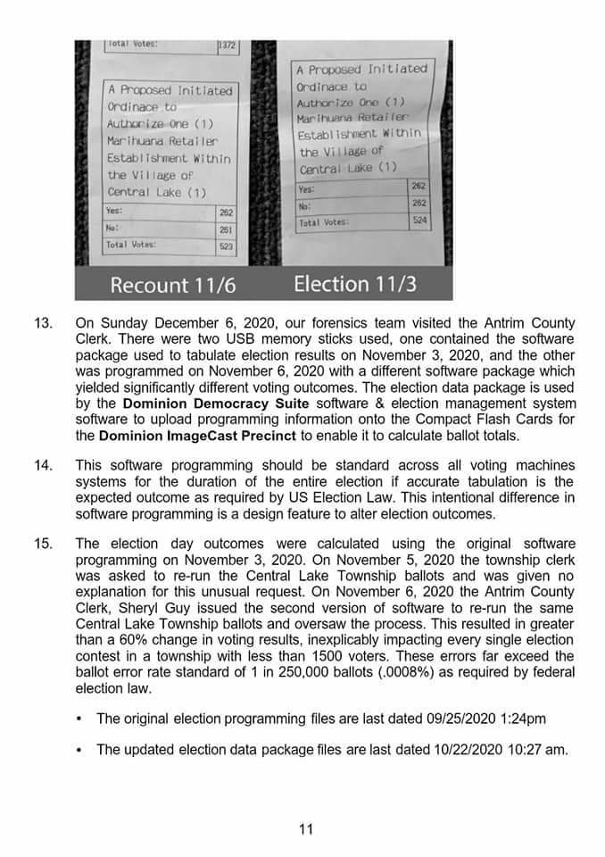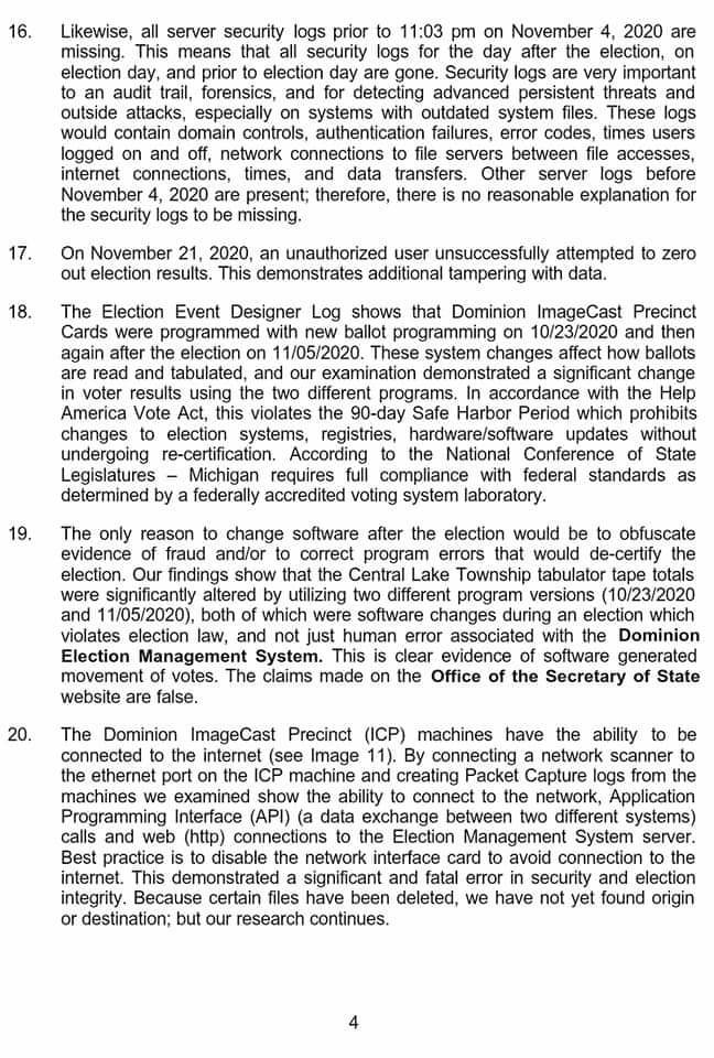 “Because the same machines and software are used in 48 other counties in Michigan, this casts doubt on the integrity of the entire state election in the state of Michigan.”