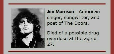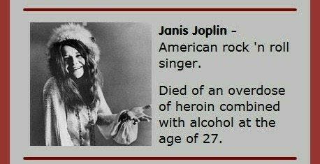 Growing up in the 60s and 70s, I knew of the early deaths of Janis Joplin, Jimi Hendrix and Jim Morrison, but had never connected the fact they were all 27.