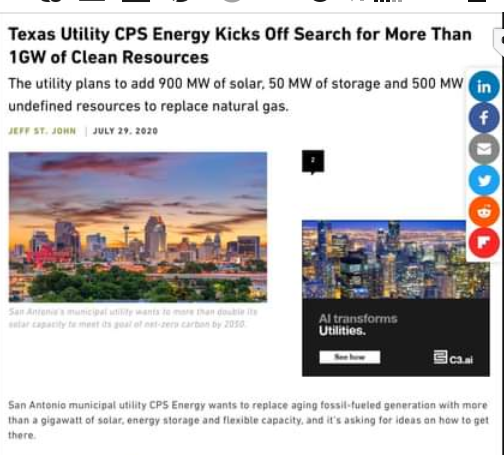 “San Antonio municipal utility CPS Energy wants to replace aging fossil-fueled generation with more gigawatt of solar, energy storage and flexible capacity, and it’s asking for ideas on how to get there,” Nirenberg said.