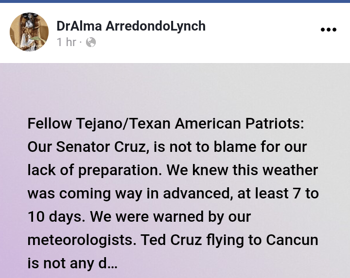 “With school cancelled for the week, our girls asked to take a trip with friends. Wanting to be a good dad, I flew down with them last night and am flying back this afternoon. My staff and I are in constant communication with state and local leaders to get to the bottom of what happened in Texas. We want our power back, our water on and homes warm. My team and I will continue using all our resources to keep Texans informed and safe.”