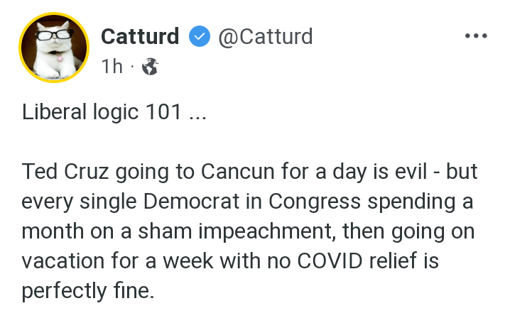 Reminiscent of their failures to recall BLM-Antifa destruction during 2020 riots, Democratic Governors locking our grandparents in nursing homes to die, Pelosi, Newsom and other socialist politicians disobeying their own mandates with salon, restaurants, and exotic travel (without their masks on), this time the crybabies made certain to emphasize the Cruz’s family trip.