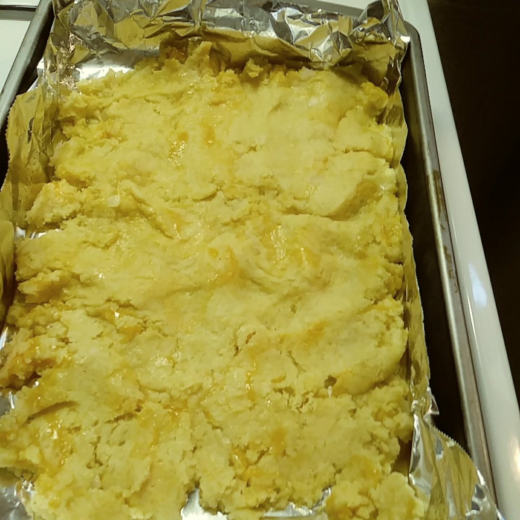 Shoot, I thought I’d give it a try so I made us a batch of it. We’re calling it our “No-Milk-or-Eggs-But-Stuck-in-a-Snow/Ice-Storm-in-Texas Dish.” It goes something like this: