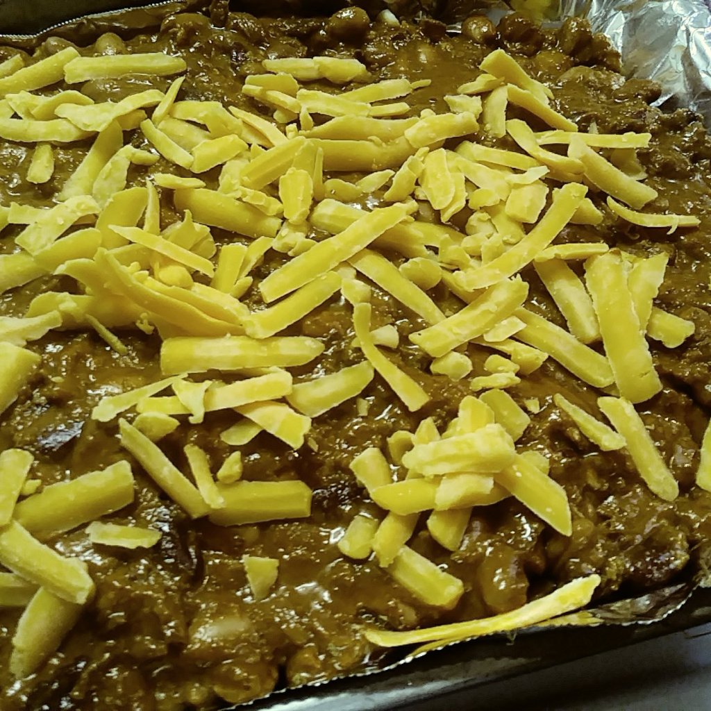 6. While that’s baking, prepare/heat the chili per instructions.