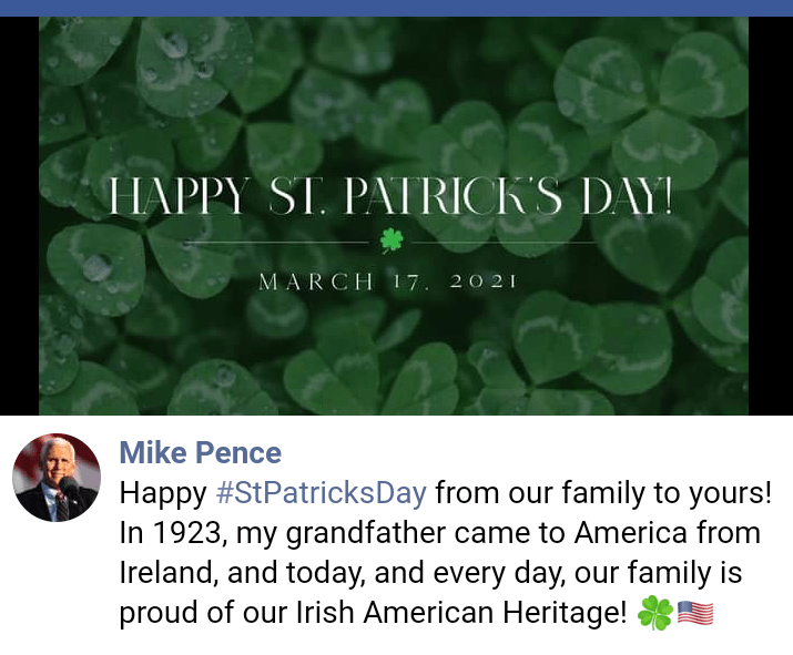When ex-Vice President Mike Pence posted a “Happy St. Patrick’s Day” greeting on social media March 17, 2021, it didn’t go over too well with thousands of patriotic Americans.