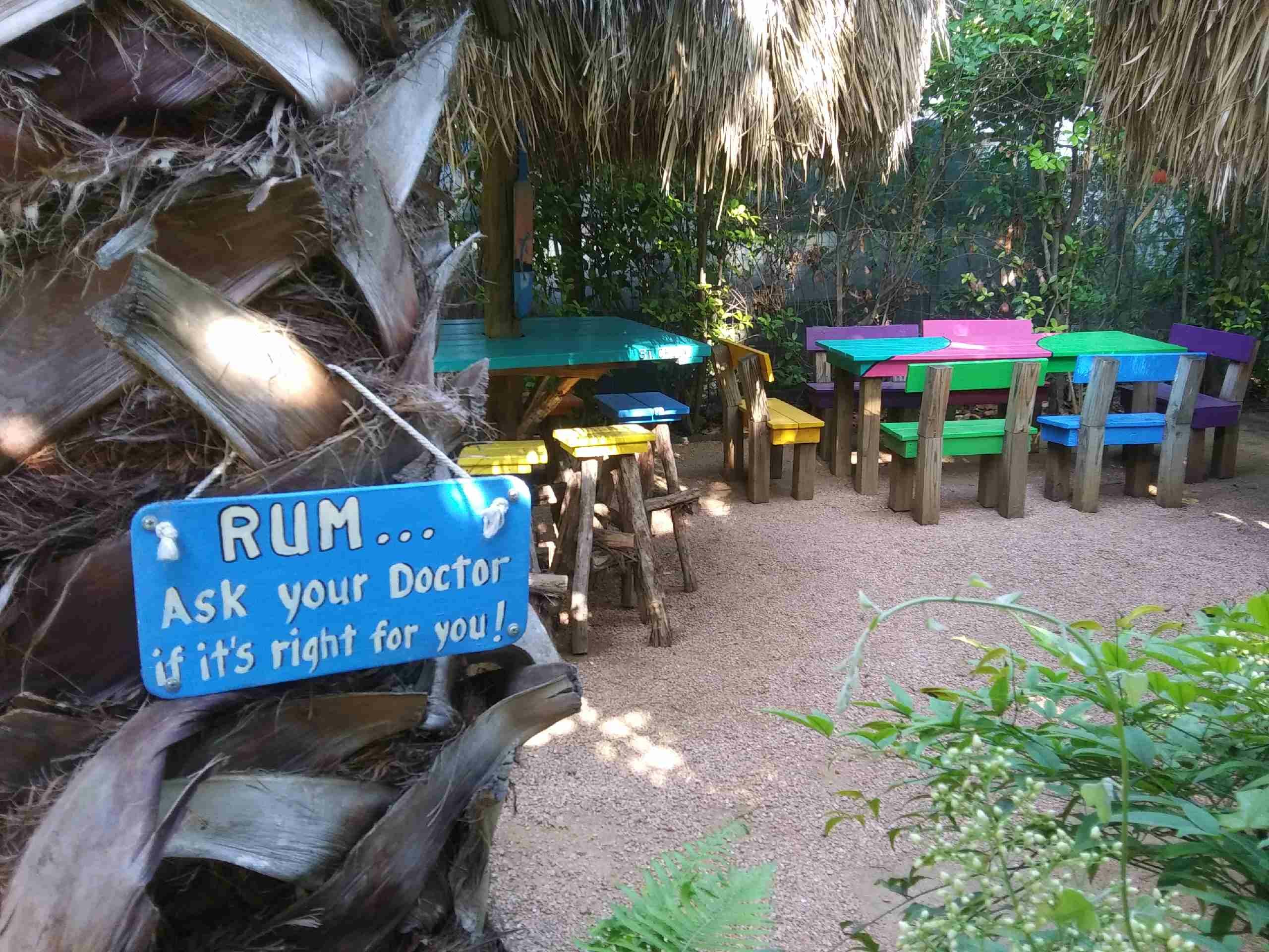 By the look on our faces, Mike immediately welcomed us and told us to settle down “anywhere ya’ want, whatever looks good” amid a lushly landscaped tropically shaded outdoor area.