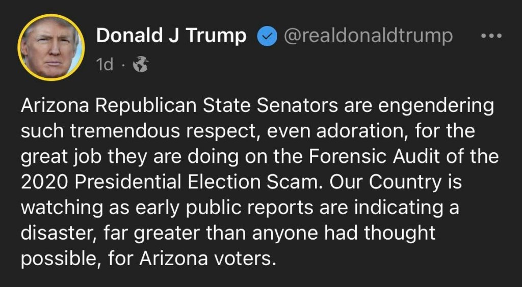 Why do you think so many states are visiting AZ for the audit right now, including states that supposedly already went Trump and didn’t have contested election issues? They know what is coming.