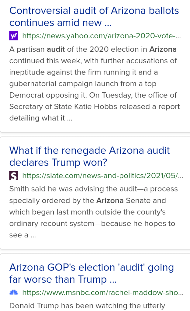 Look what predictably pops up first doing a search of “Arizona Audit”: