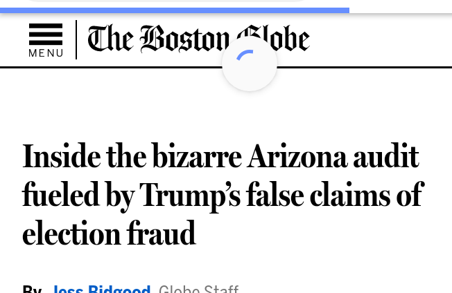 Some are almost laughable like The Guardian (“…backed by secret donors linked to Trump’s inner circle”) and Boston Globe (“Inside the bizzare Arizona audit…”):