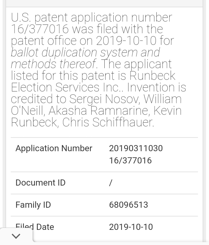One obvious question is why would Kevin Runbeck want a patent to generate revised ballots?