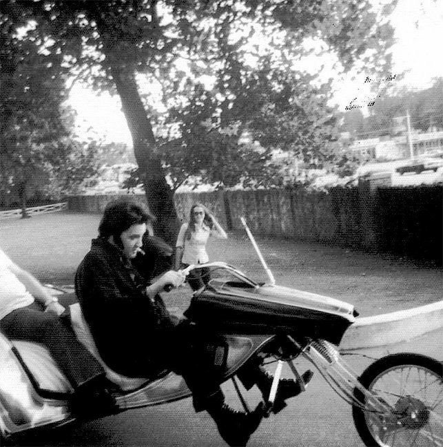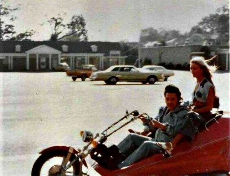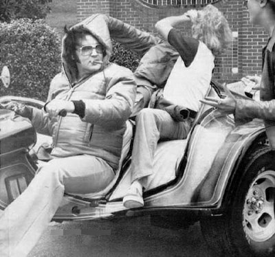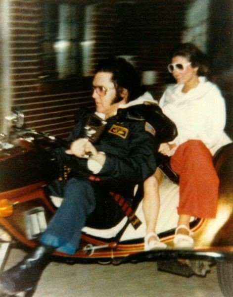 On the night I interviewed him, he was excited about his new motorcycle. Linda Thompson was on the back. Another cousin, Billy Smith, had taken off on his cycle and Elvis stopped to ask Harold if he had seen him. Here is a photo I took when they returned back at daylight.