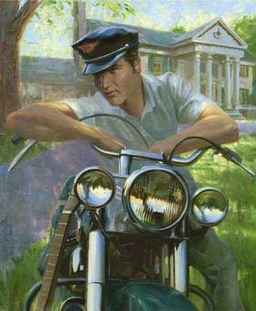 Here are more photos and art of Elvis through the years on motorcycles.