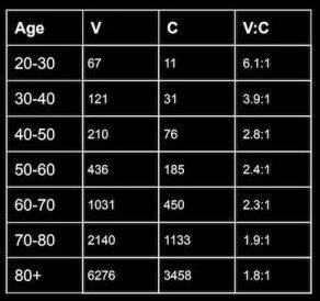 V:C in the US is not favorable for any age. This table shows the V:C numbers by age.