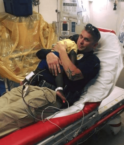 I just knew this child needed somebody to be there for him,” the officer said. “It was just human instinct; humanity. The hospital staff was taking great care of him [but] he was sobbing and crying. I picked him up and within minutes, he was asleep on my chest.””