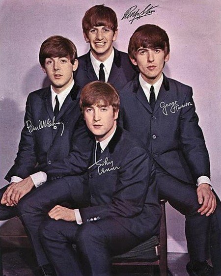 That’s The Beatles in front followed by Lennon, McCartney, Harrison, Starr, George Martin and Brian Epstein. Behind The Beatles is Elvis.