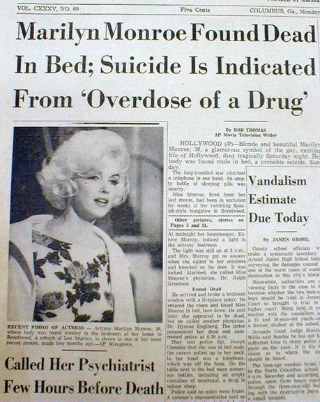 Immediately the media reported she died of barbiturates overdose, but over the years her death is believed by many to have been a murder. The most popular conspiracy theory is that she was killed by the government due to her rumored affairs with John F. Kennedy and Robert F. Kennedy.