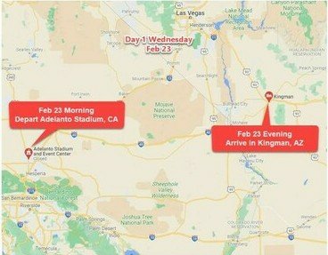 First 4 Days: Truckers, Bikers, RVs, and Other Vehicles Main Convoy Route Across America