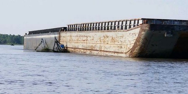 It was July, the monstrous river flowed back out of the hole in the levee and caused six giant barges to relocate via another raging flood.