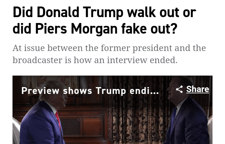 For those who want to make Piers look bad, compare his video promo and how it was doctored to the real thing. Hopefully they will now be doing some big changes to their final product. It just shows, however, what I have to deal with in the Fake News Media. He went out of his way to deceptively edit an interview and got caught. That is a big story, isn’t it?