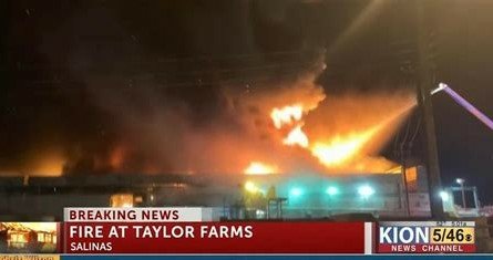On April 13, a major food California processing plant, Taylor Farms, burned almost completely to the ground.