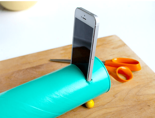 Make a cell phone speaker. Cut a slit near the bottom of the Pringles can. Make the slit large enough for your cell phone to sit inside. Remove the lid. The can will amplify your cell phone’s speaker.
