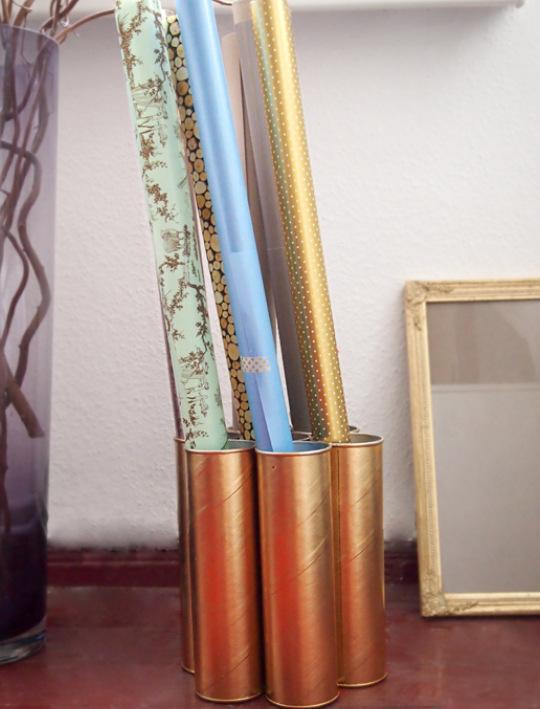 - Makeup organizer. You can cut down Pringles cans so that your makeup brushes, comb/brush, and other tools are easily at hand. Tape a series of cans together so they’ll stay securely upright.
