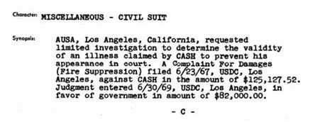 Cash’s nephew, Damon Fielder, was on the fishing trip with Cash when the fire started. According to his story, Uncle John was just drunk and allowed their campfire to get out of control. The blaze burned 508 acres of forest, spread across three mountains, and 49 of the area’s 53 California condors disappeared.