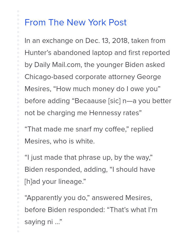 The reason for no media comebacks was because one of their own, The New York Times, actually reported on Hunter Biden’s racism: