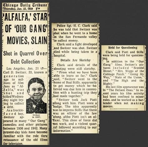 Carl Switzer is interred at the Hollywood Forever Cemetery in Hollywood, California. His death went virtually unnoticed in the media, as Switzer died on the same day as the famous movie director, Cecil B. DeMille. Switzer received only minor footnotes in most newspapers, while DeMille’s obituary dominated the columns.