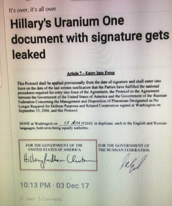 🔹She sold Russia our uranium.