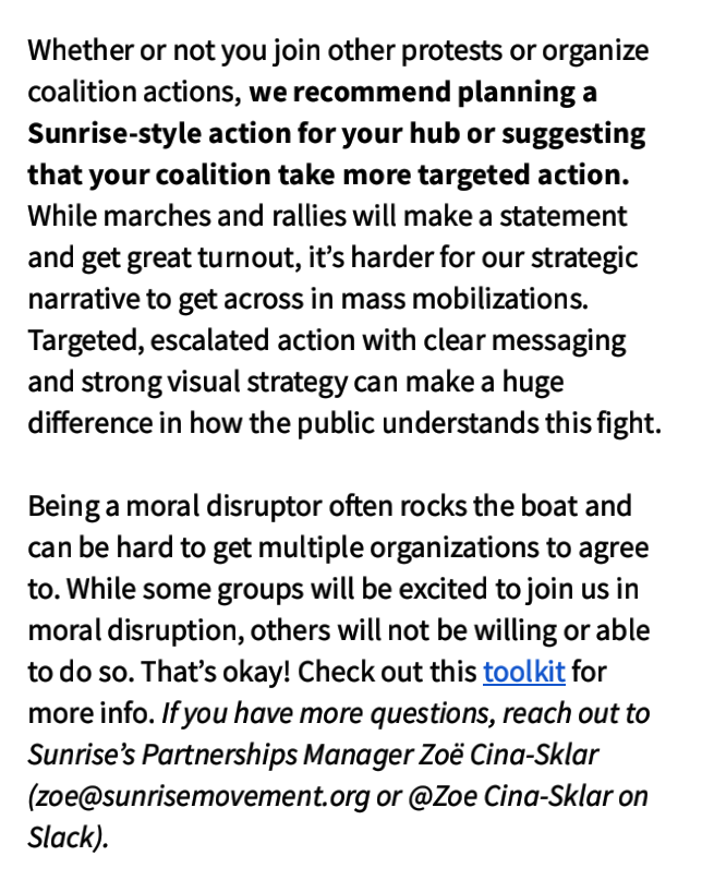 Here is some of the propaganda the Sunrise Movement uses in their training of American youth to prepare for disruption, activism and insurrection: