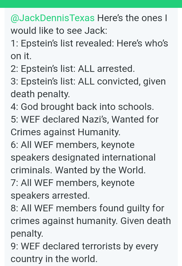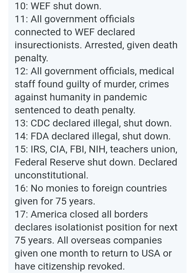 I would love to see those happen; however, since so much perverse money went into Epstein’s Island (more than what went into the Clinton Foundation), that stops the first three.