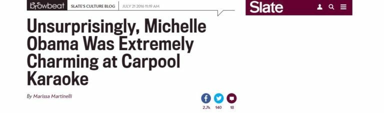 Now let’s take at least as charitable a look at the First Ladies who media kissed up to. This article features Michelle Obama. Right off the bat, can you see the difference?