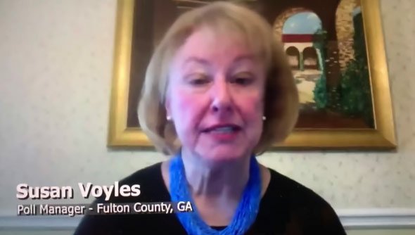 In 2021, Fulton County poll manager Suzi Voyles testified she saw ballots marked for Joe Biden were suspiciously pristine and uniform while she was sorting through a large stack of mail-in ballots in November 2020.