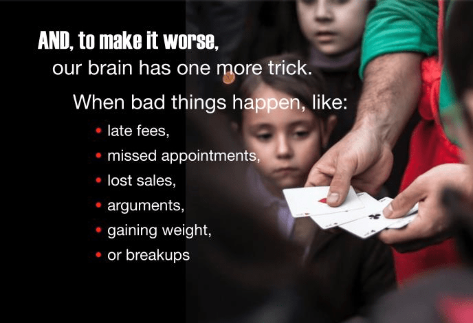 Your default may be to think something happened (or might happen). Our bad feeling becomes a negative belief: that bad things always happen.