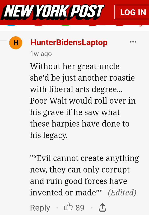 āHe bordered on rabid fascism,ā the 62-year-old heiress who suffers from drug addiction (with a long record of seeking on-and-off rehabilitation) said of Walt Disney.