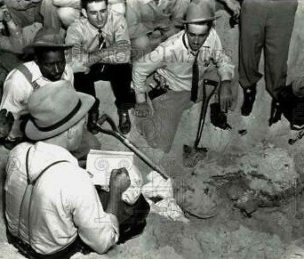 On Oct. 14, 1938, the men uncovered Minnie’s partially decomposed remains in the sand. The event became a spectacle with people dressing up to watch the tractors and digging equipment recover the body.