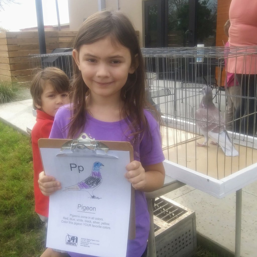 After students touched the actual birds and colored pictures of pigeons, Young awarded each child with an “I PET A PIGEON” sticker.